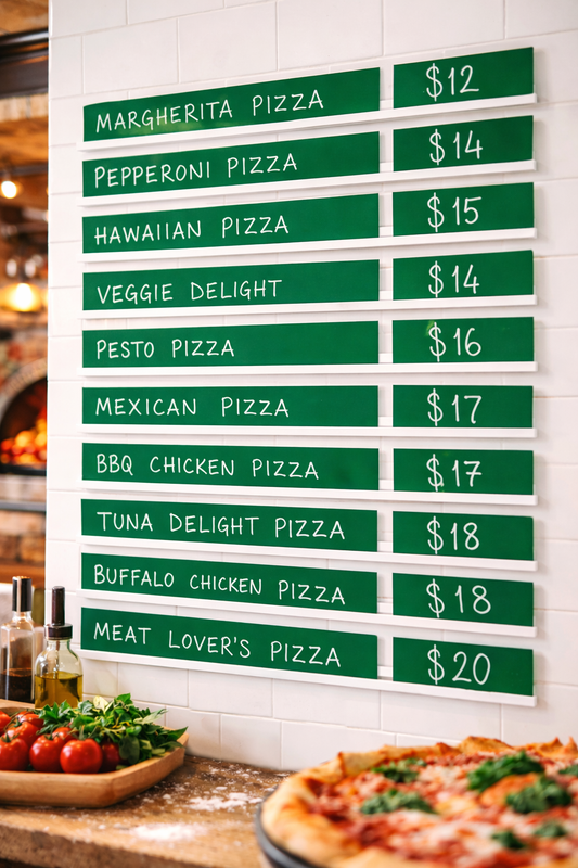 Wall-mounted menu boards offer ideal solutions for displaying menus in a stylish and organized manner in restaurants, cafes, and hotels. Available in various sizes and designs, they adapt to any setting.
