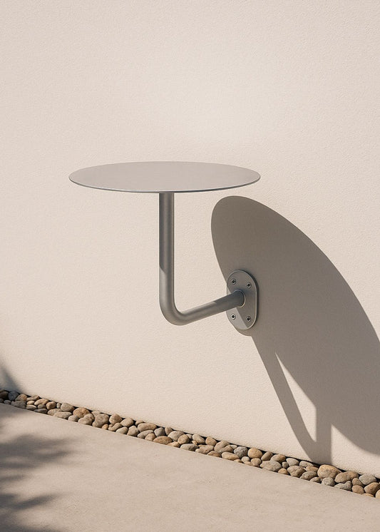 Wall-Mounted Cafe Table, Metallic Silver Painted.