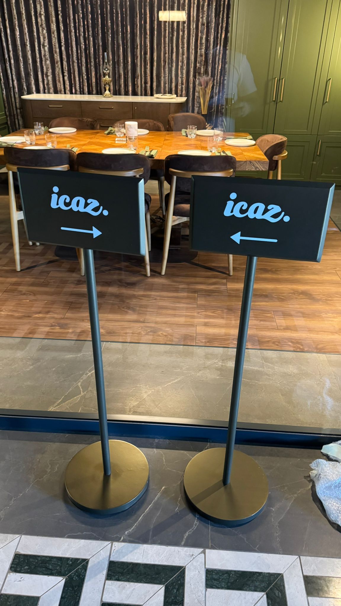 The product is made of static oven-painted metal material . Thanks to its weighted base structure, it will not tip over in windy weather, yet its light weight makes it easy to transport. Directional text, icons, or company logos can be added to the top using UV printing. After ordering, please send your content or logo to hello@otimsan.com.tr Simply send it to this address.
