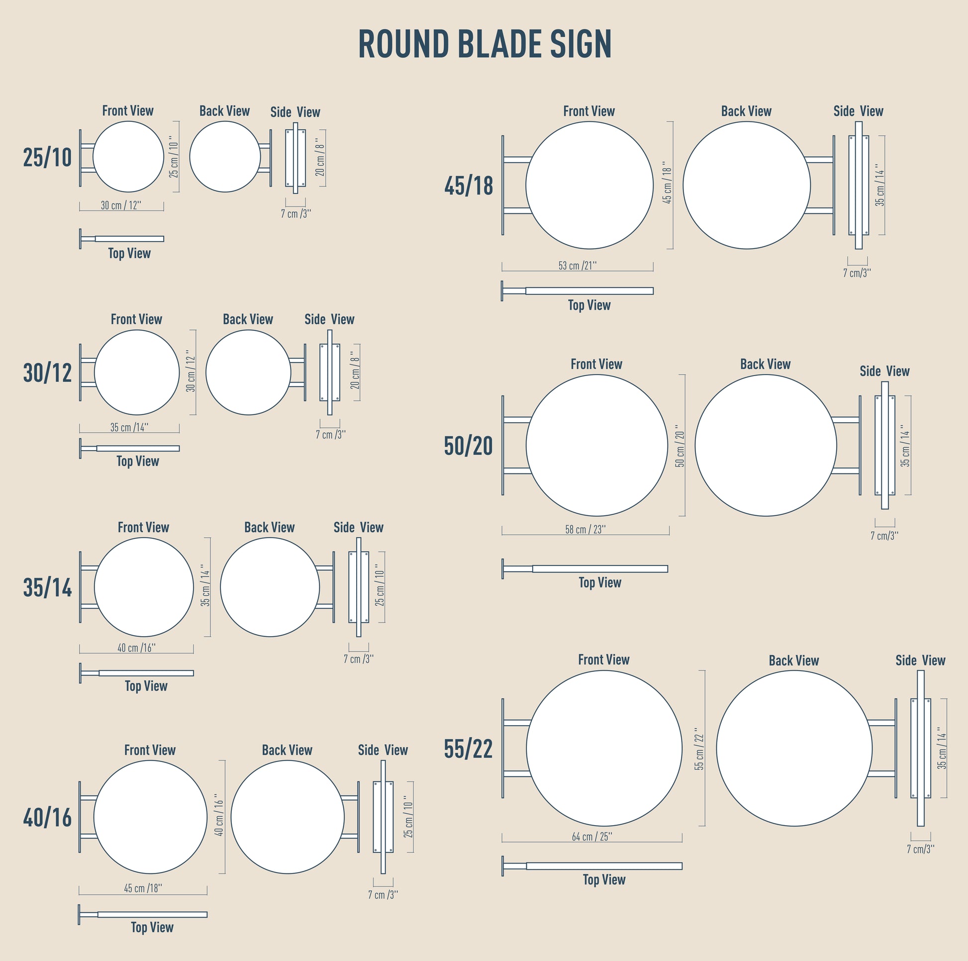 Yes, we can print logos. We can apply your business or brand logo to the signage using UV printing for a permanent and high-quality result. To do this, simply send your logo to hello@otimsan.com.tr after placing your order. We will first send you a mockup (preview); once you approve it, we will proceed with the printing process. This service is included in the total price. - What mounting height do you recommend for a round shop sign?