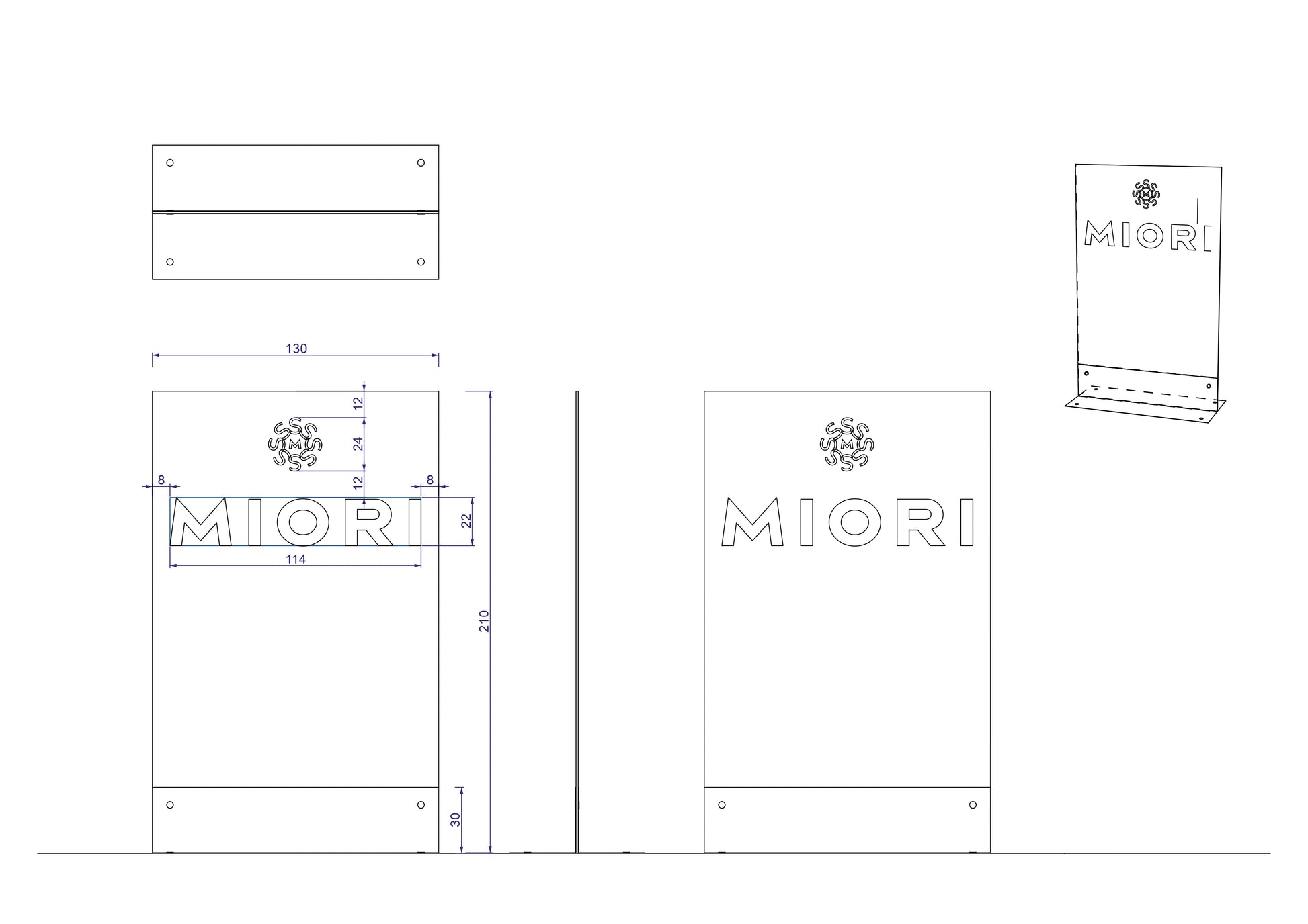 The product consists of a 3mm corten steel totem with the dimensions shown in the images, without single-sided illumination.
