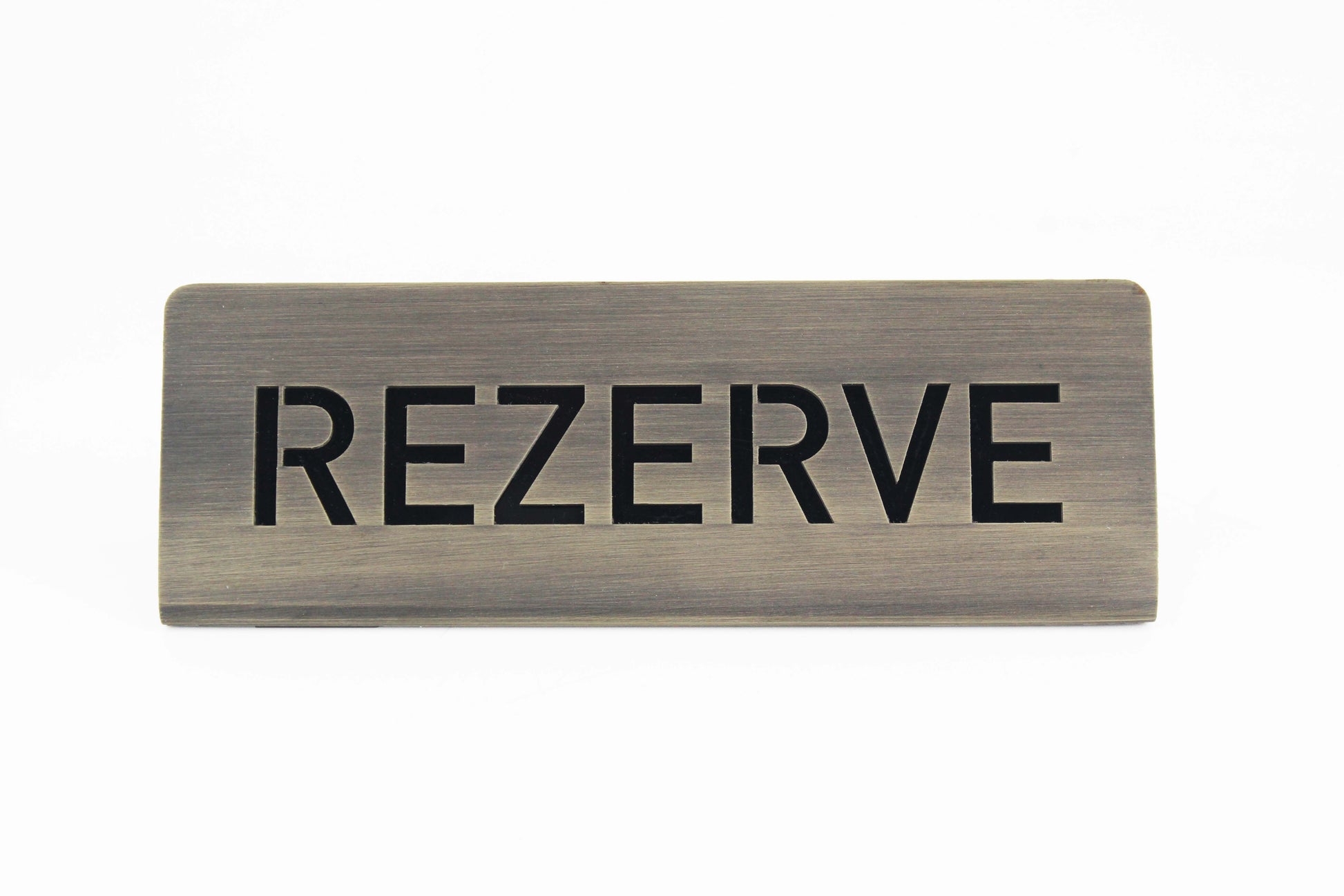 The product contains 10 antique gold stainless steel "reservation" signs.