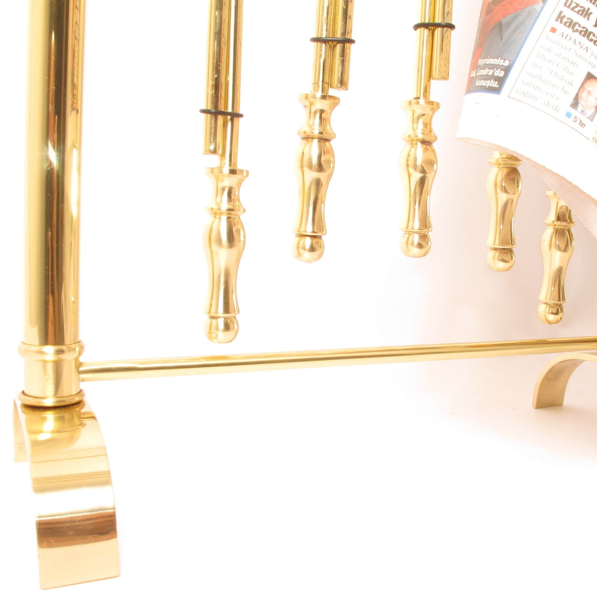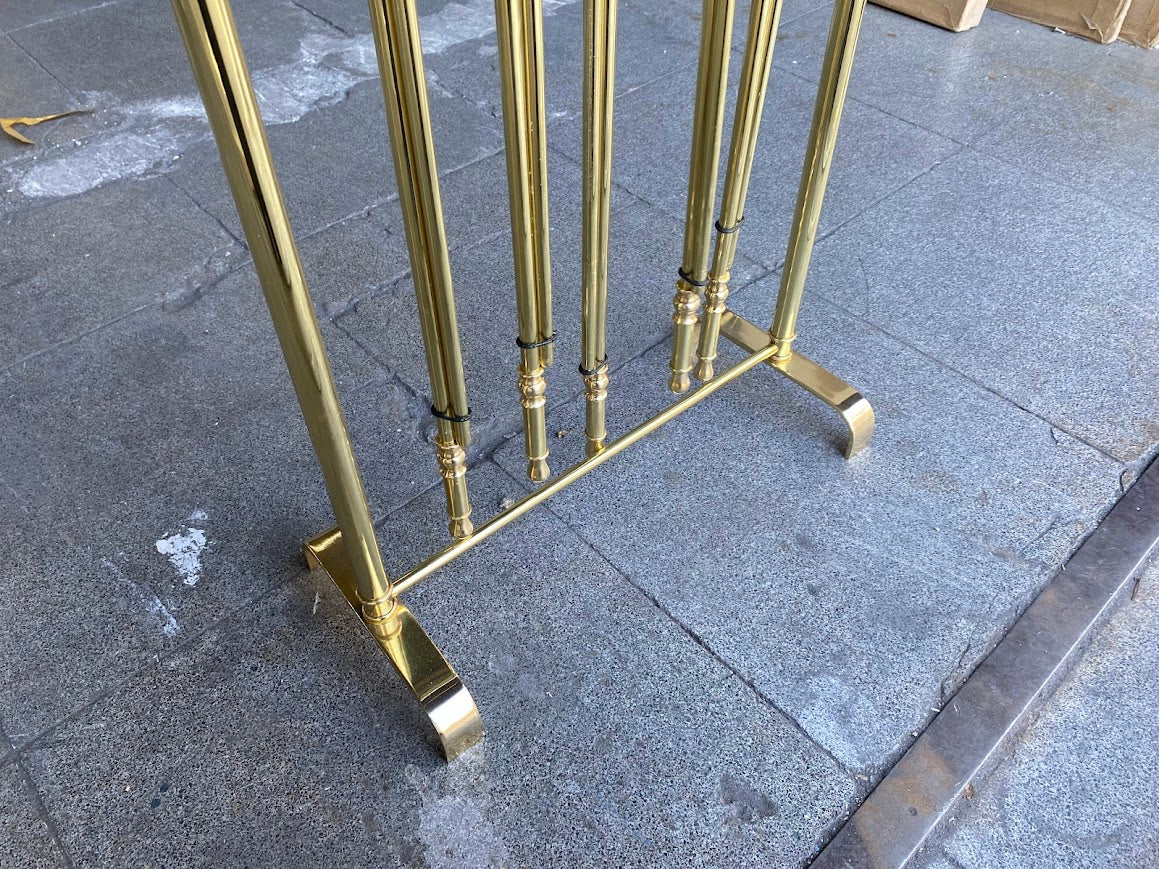 This vintage-style brass newspaper rack is the perfect choice to add a touch of nostalgic elegance to your spaces. Made from high-quality brass with an aged look, its durability ensures years of use. Ideal for displaying newspapers and magazines neatly in hotel lobbies, cafes, offices, or home decor, its elegant design complements both classic and modern styles, creating a warm and inviting atmosphere for your guests or clients. The fine craftsmanship and polished brass finish add a striking vintage feel to any setting.